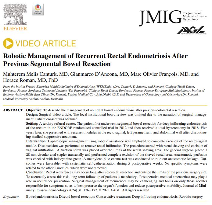 Robotic management of recurrent rectal endometriosis after previous segmental bowel resection (video article)